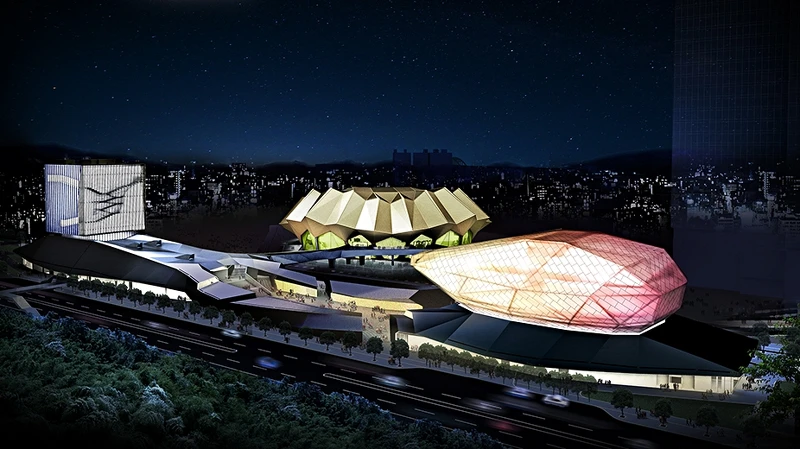 此外南基地還有用以培育臺灣音樂人才的「產業區」,玻璃馬賽克表面造型如一個發光水晶體,會有音樂展演空間、音樂教室、練團室、辦公室、錄音工作室及音樂主題餐廳設施。兩個場館計畫2021年陸續開幕。