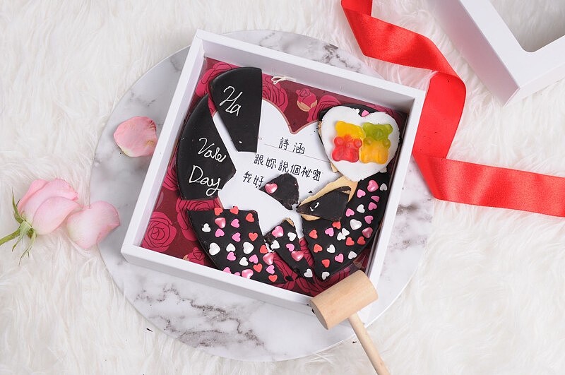 想說的話不敢說,那就讓「告白巧克力」來表達心意吧,Funsiamo除了首次推情人節鹹派,還設計了一款蛋糕,可以把想要說的話,透過槌打蛋糕來傳遞,心裡的祕密,只有他看得到。