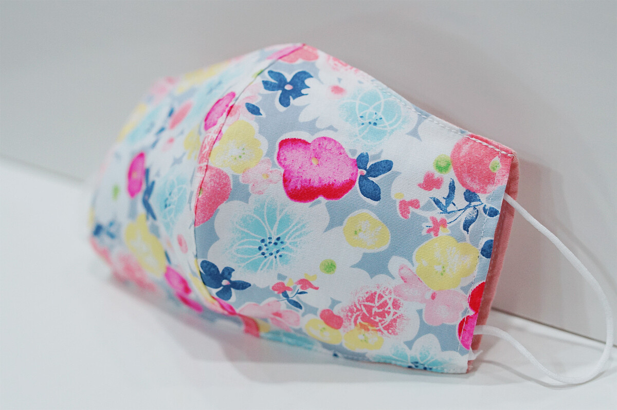 這款的印花布也非常漂亮,撞色的日系花朵~即使戴上口罩也能讓心情很愉悅!