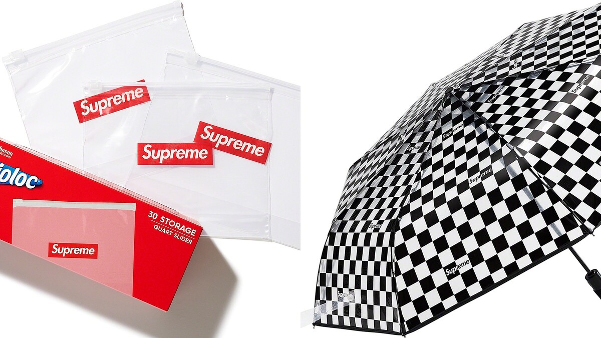 另外還有聯名美國Ziploc夾鏈保鮮袋,透明袋身上也有搶眼Box Logo,相信買了也會捨不得用!必搶的還有黑白棋盤格雨傘,不只外型超吸睛,更是能自動開關功能!其他則有一些水瓶、馬克杯、碗盤、木質線香座、玻璃菸灰缸、瑞士刀等小物,一定要密切鎖定開賣訊息啊!