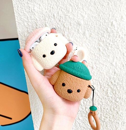 擔心清潔的話也可以選這種防水款塑面造型款的AirPods保護套,雖然沒有毛絨的逼真感,但非常好清潔同時也擁有可愛造型!
