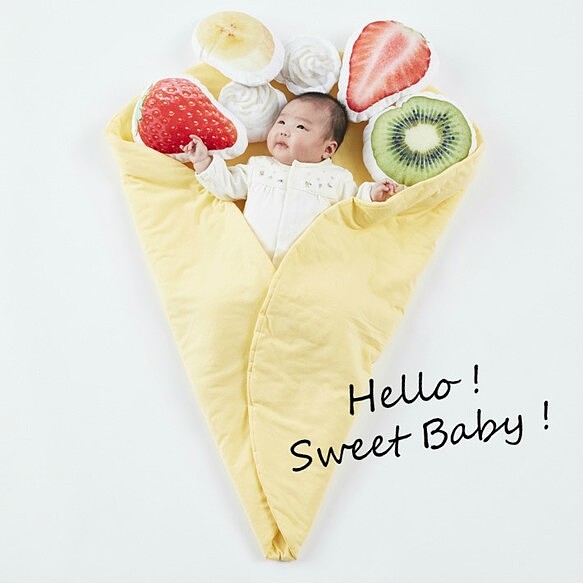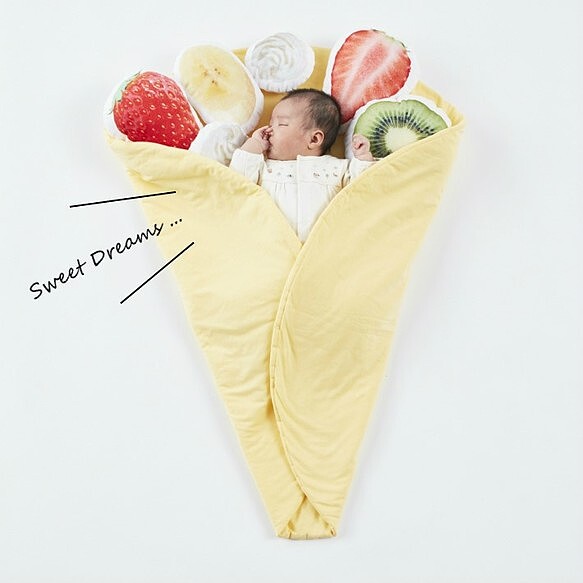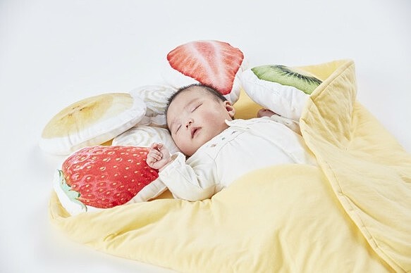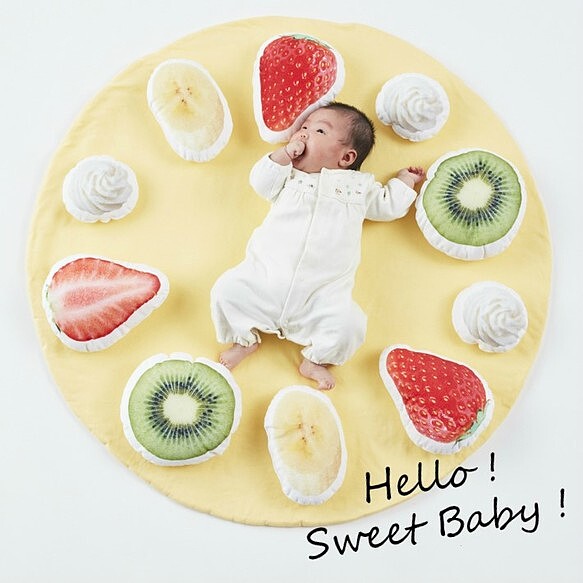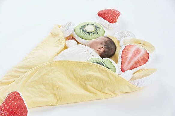 水果配料也能當作枕頭,看著寶寶躺在毛毯上真的超級療癒,也可以當抱枕使用一枕多用非常實用!