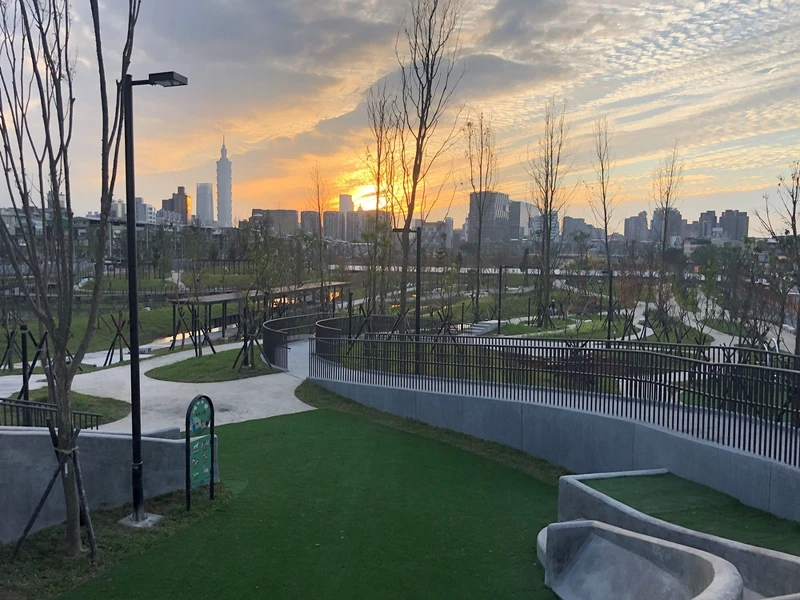 居住在台北東區的人歡呼,現在有全新的公園可以散步了!占地2.5公頃面積的「新新公園」、以城市溼地為主題,有著多樣性水岸與植栽環境,讓周遭居民能輕易接近大自然。還能遠眺台北101,配合夕陽西下的暮色,實在令人心曠神怡。
