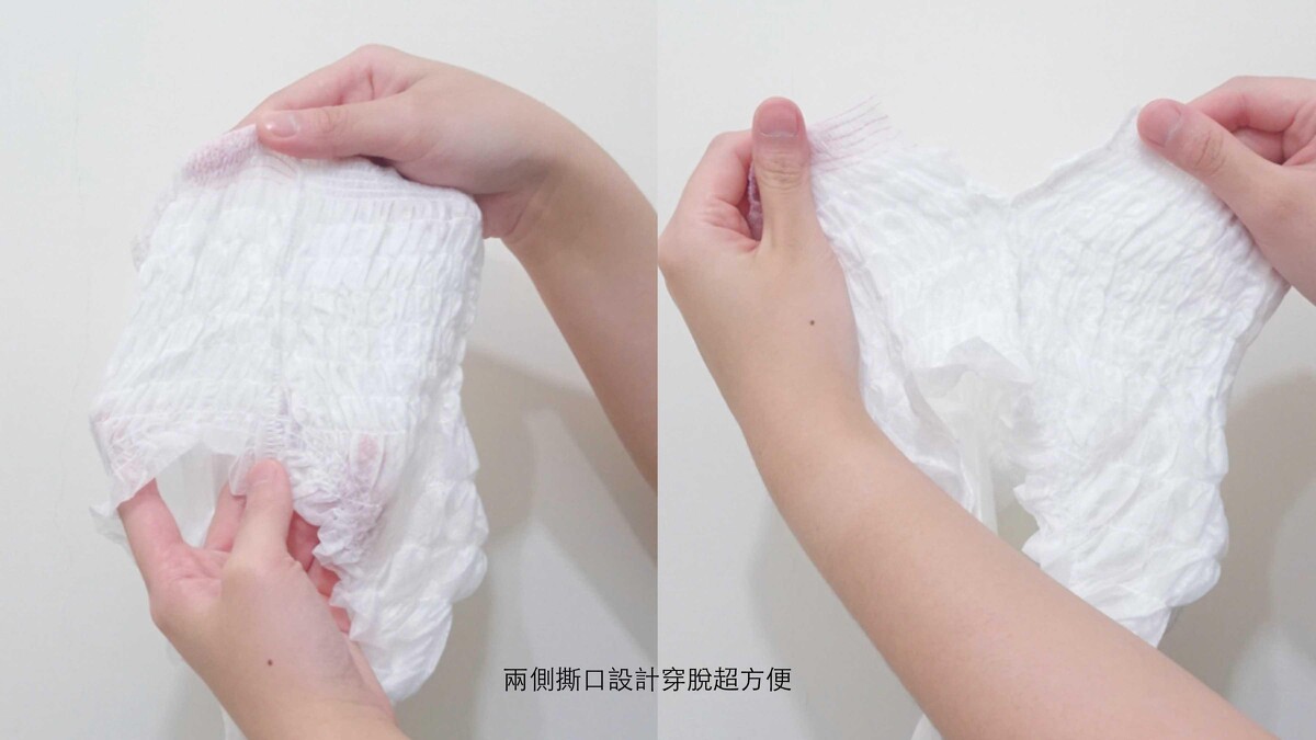 第一次穿上熊抱安睡褲第一個感覺是材質也太柔軟舒服了!腰部的彈力腰圍也是一個設計亮點,基本上像穿平常的棉質內褲一樣舒服,完全不會勒肚子;兩側的貼心撕口設計,直接撕開就能輕鬆脫掉,更換時經血完全不會沾手,一條就抵了生理褲&加長型衛生棉,難怪編輯們都一致狂讚!