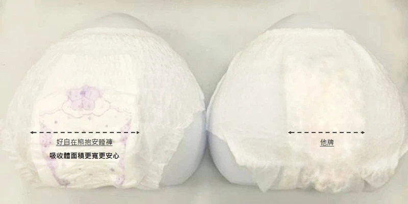 M編身邊有蠻多姊妹在面對大流量,他們總是在貨架上找公分數最長的衛生棉買下去就對了,靜靜躺著動也不動或許沒問題,但睡覺時無意識的翻身就是必漏,真的心很累!熊抱安睡褲的「前側漏3邊防漏」顧名思義不管經血怎麼流,它就是有辦法擋住經血外漏的路,為了量大及夜用設計的「超長吸收體」不僅夠長也夠寬,搭配「立體防漏側邊」,真的一點漏的機會都沒有!再來是獨有的蜜桃剪裁,讓小褲褲完美地服貼在屁屁,各種睡姿、跨腿、翻身,也不會再把衛生棉弄歪,而有漏的機會囉!