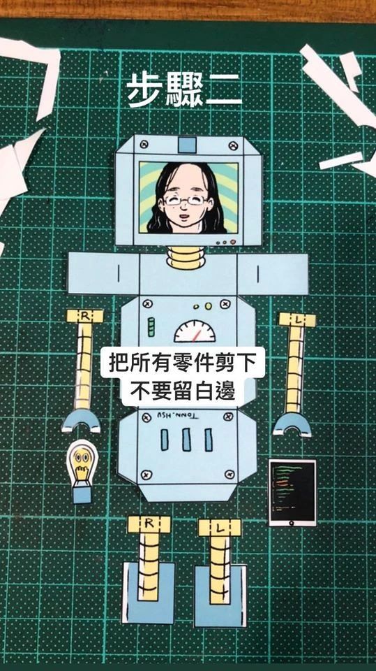 需要先將唐鳳的圖檔印製出來,可以至7-11的 ibon 機台,在首頁左上方輸入代碼4973406977、也可以至創作者Tonn Hsu 許彤的紛絲團提供雲端網址免費下載自行列印,接著準備剪刀、美工刀、膠帶或膠水,就可以準備開始啦!