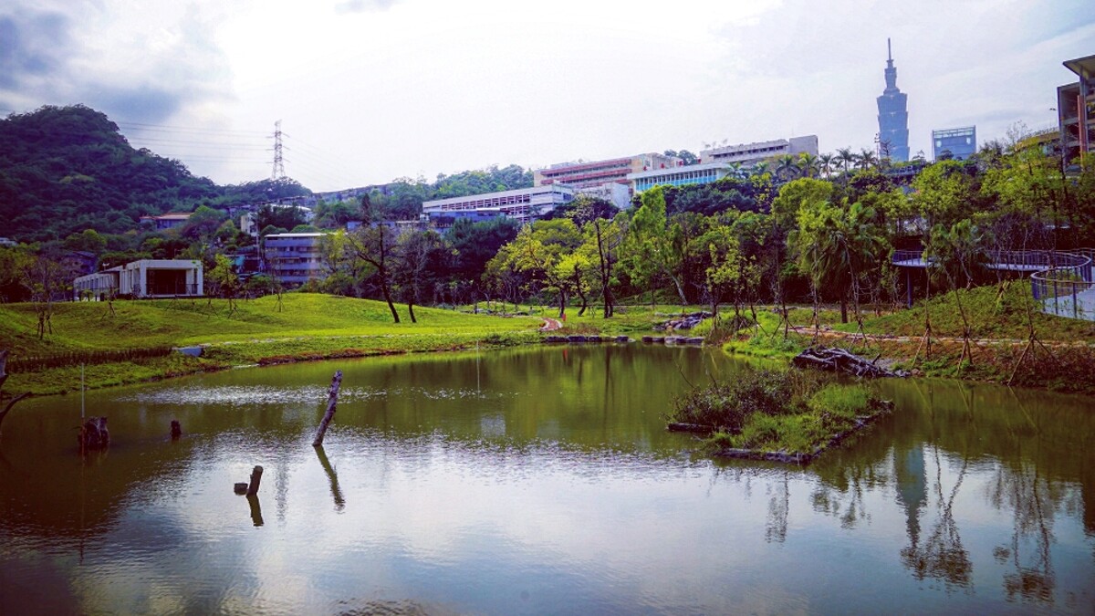 有著多樣性水域與棲地,也串連四獸山(虎山、象山、獅山及豹山)步道系統,是下山後的絕佳休息場所、能靜靜欣賞埤塘上的光影變化,甚至還能看到台北101的倒影。服務導覽站會發現公園代言人Q版「領角鴞」、幸運兒還可以在多功能展覽館的生態觀察窗發現陂塘鳥。