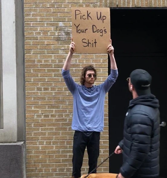 各位應該都知道這位「舉牌哥」吧!留著一頭捲髮,帶著墨鏡,不時站在紐約街頭舉牌抗議,手裡舉的牌子寫著許多日常心聲,看似各種微不足道的抱怨,卻讓許多人都超有共鳴,更讓他的IG帳號dudewithsign爆衝超過600萬粉絲。