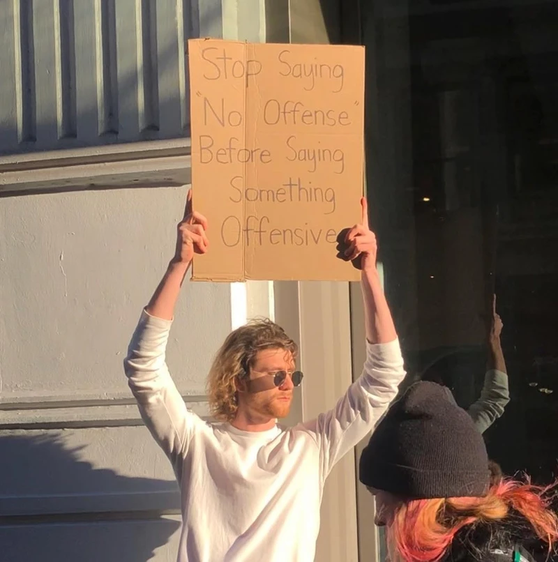 「在說惹怒別人的話之前,別再說『無意冒犯』了!」