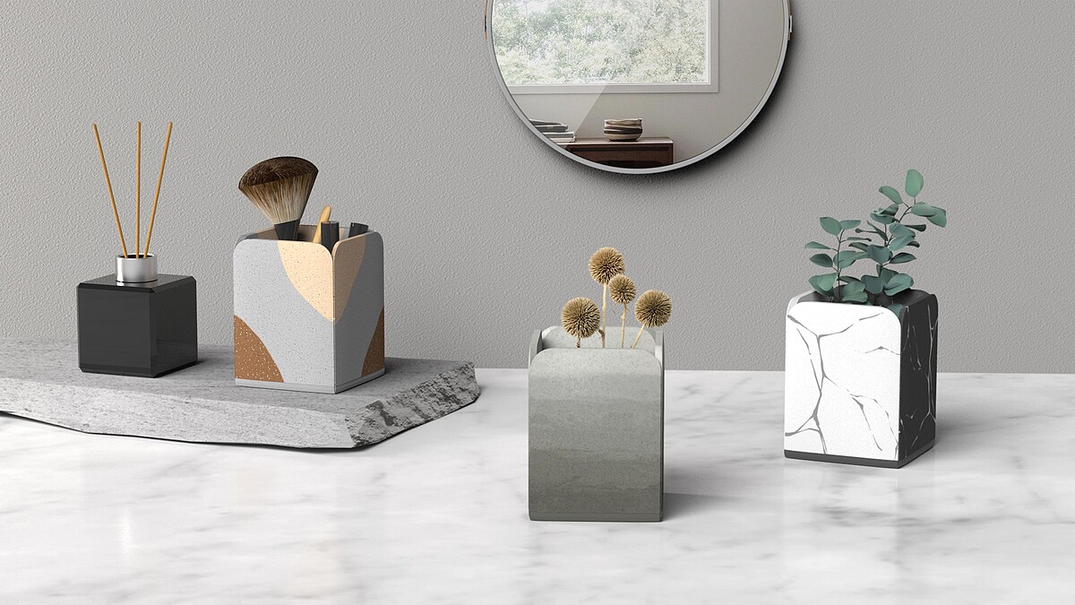 使用軟水泥這個神奇的材料,視覺上保有水泥般地堅毅粗糙,使用上卻柔軟具彈性,是一款「視覺」跟「觸覺」有強烈衝突的收納置物桶!