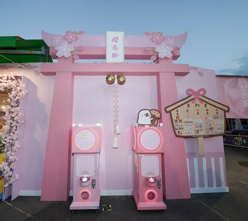 拍完照一定要到3公尺高的粉紅鳥居求個2020吉利籤球,還設有解籤處可以掌握自己的運勢。接著要去充滿春季浪漫的櫻花拍貼機,留下最萌紀念照!首波有3款櫻花趣限定拍貼相紙,現場也設有IG讀將櫻花趣相框,簡單拍出可愛網美照。