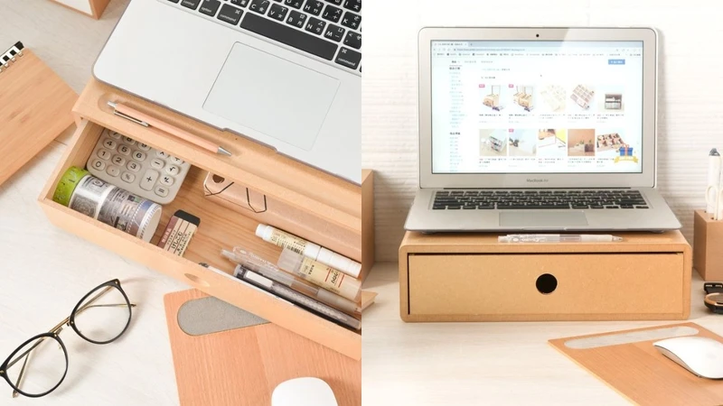 想要高效率辦公,整潔的空間會加不少分!把零碎文具全丟入抽屜,只擺放一支筆在凹槽上,9mm厚度板材相當耐重,四邊也改用圓弧設計,多了點柔和氛圍。售價850元。