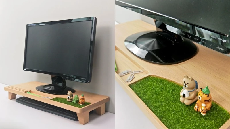 工作久了,總是需要一點「綠意」淨化眼球!此螢幕架不僅能提升高度,緩解長時間打電腦的肩頸痠痛,更特地設計一片小綠地,可以放置喜歡的公仔小物,不時療癒凡悶心情。還增加手機溝槽、可收納鍵盤空間,材質為堅固耐用的實木,可承重50公斤。售價1380元。