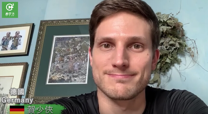 德國 賀少俠:「我希望全世界將台灣視為楷模,並且從台灣身上學習,全世界加油,台灣加油!」