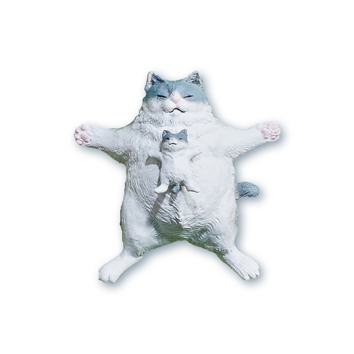 超萌的貓咪也呈現大喇喇地仰躺姿勢,貓咪如果呈現這樣的睡姿其實是表示對於環境、主人非常的安心,這款粉紅肉球一覽無遺阿~肚子上還躺著一隻迷你貓絕對要扭到!