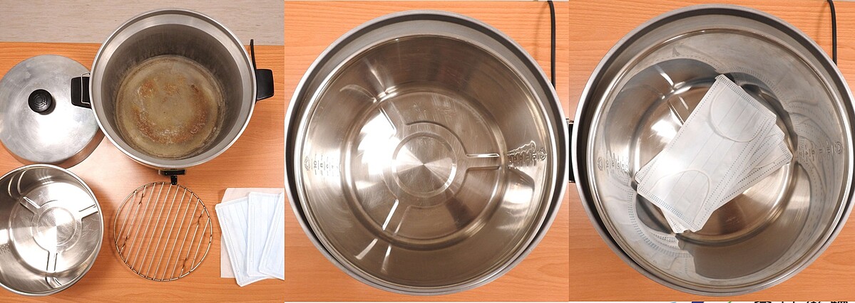 在年初時電鍋乾蒸口罩法被網路熱議。當時食藥署因沒有實證,認為可能會破壞口罩結構,降低口罩的防禦力,所以不建議大家使用,但食藥署進行實證蒸口罩確實可以充分殺菌!