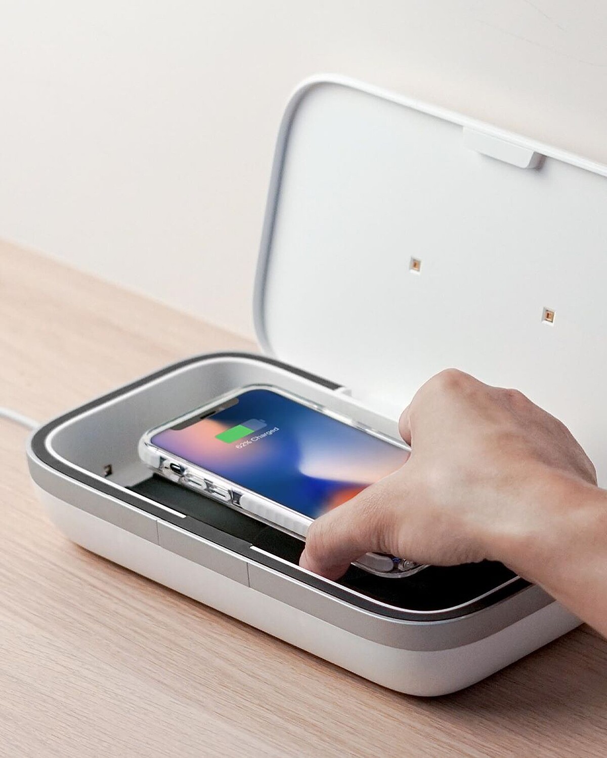 Casetify推出「紫外線消毒器」號稱能夠在3分鐘內99.9%的細菌,內建6個紫外線LED燈,啟動開關就能開始殺菌啦~但這款紫外線消毒器僅能清除正面、側面的,背面的話需要自行翻面再次進行殺菌!