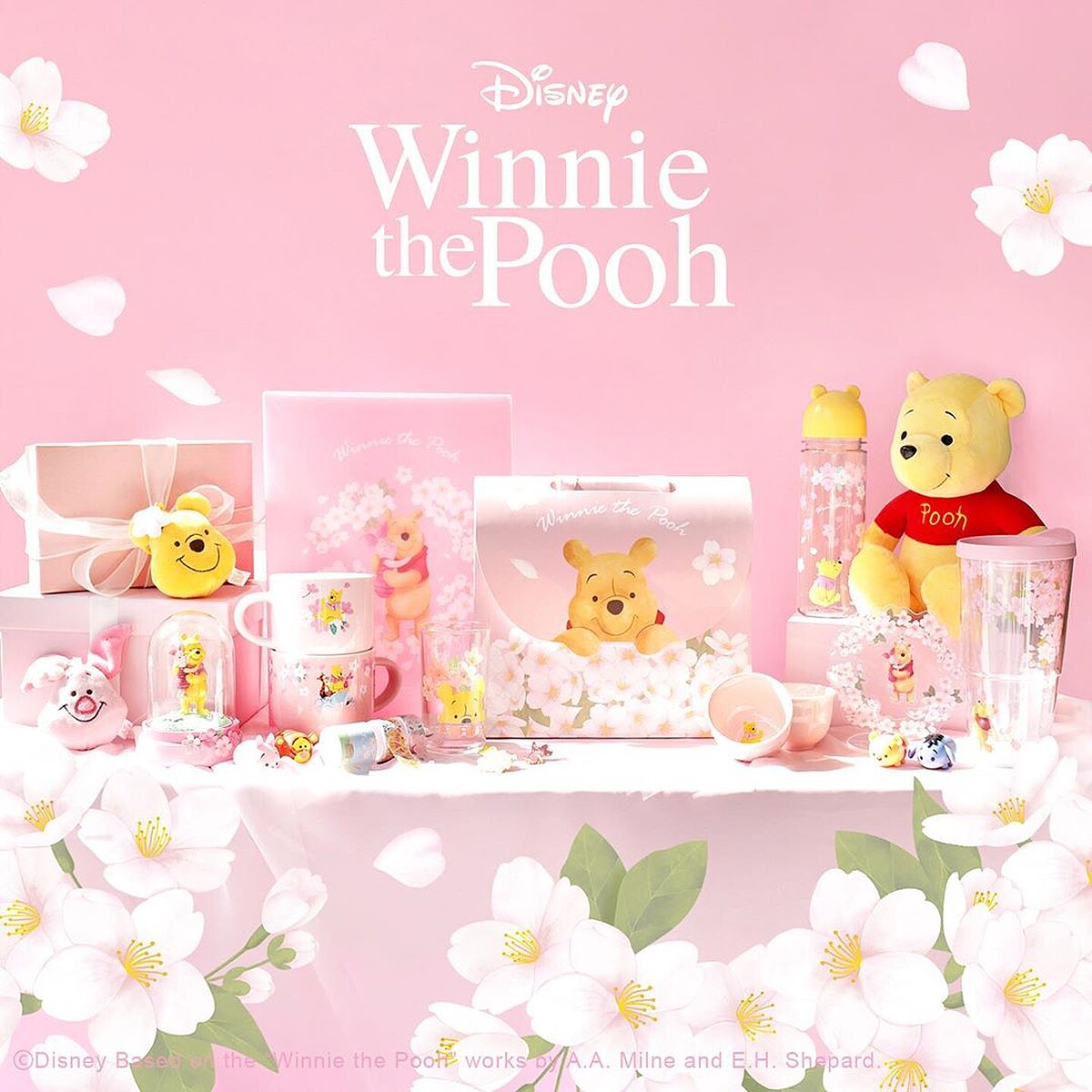 如果擔心打破的話,這款也是不錯的選擇~在桌上就能看著維尼與小豬一同賞櫻吧!