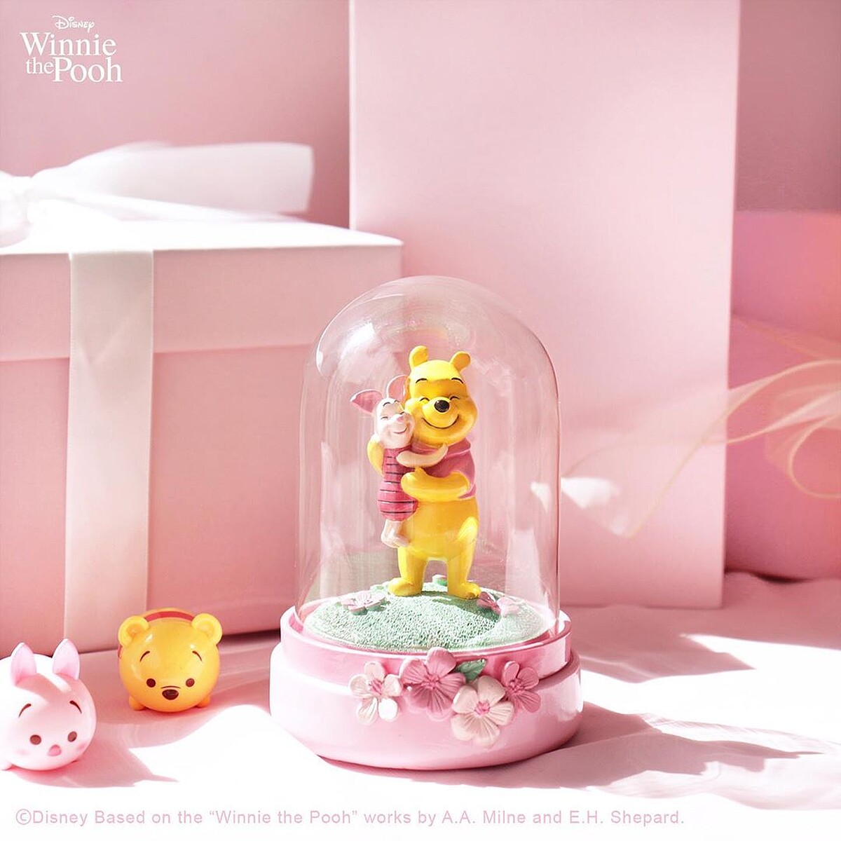 這次最讓人心動的就是這款,看著維尼與小豬緊緊擁抱再一起,搭配櫻花造型的玻璃瓶,光是擺在桌上療癒指數直接破表!