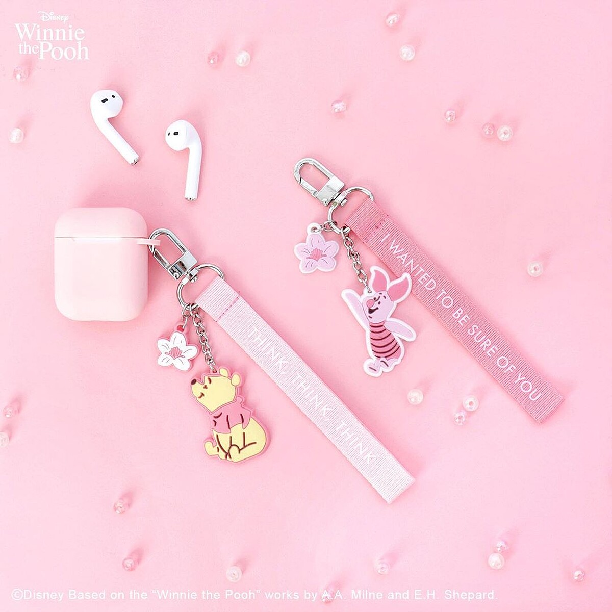 這次還推出了櫻花色的AirPods保護套,外觀以細緻淡雅的櫻花粉色系,再搭配小熊維尼、小豬的吊飾不只可愛還很實用!