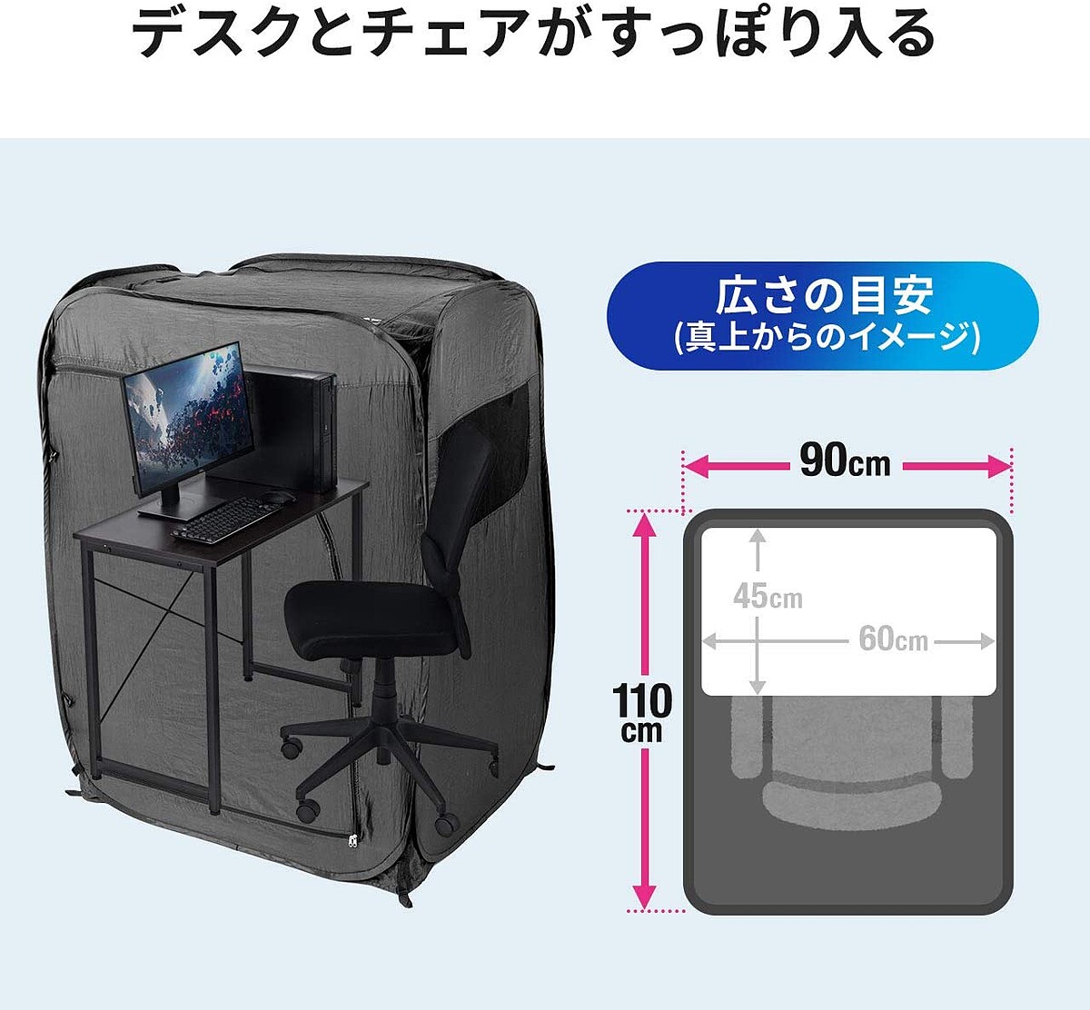 日本就推出了一款「個人辦公室帳篷」對於尚未實施居家辦公必須通勤的上班族的防疫神器,寬90公分、長110公分可以放置桌椅化身成個人辦公室!