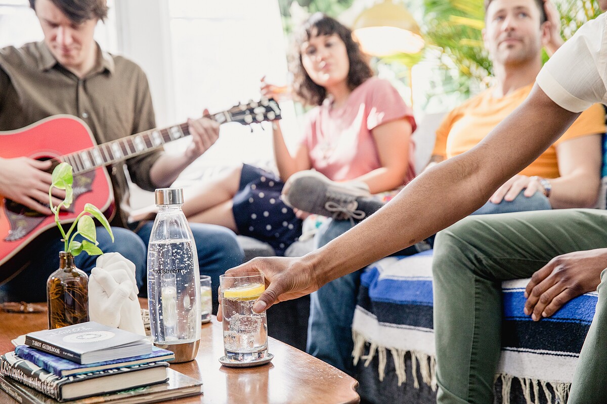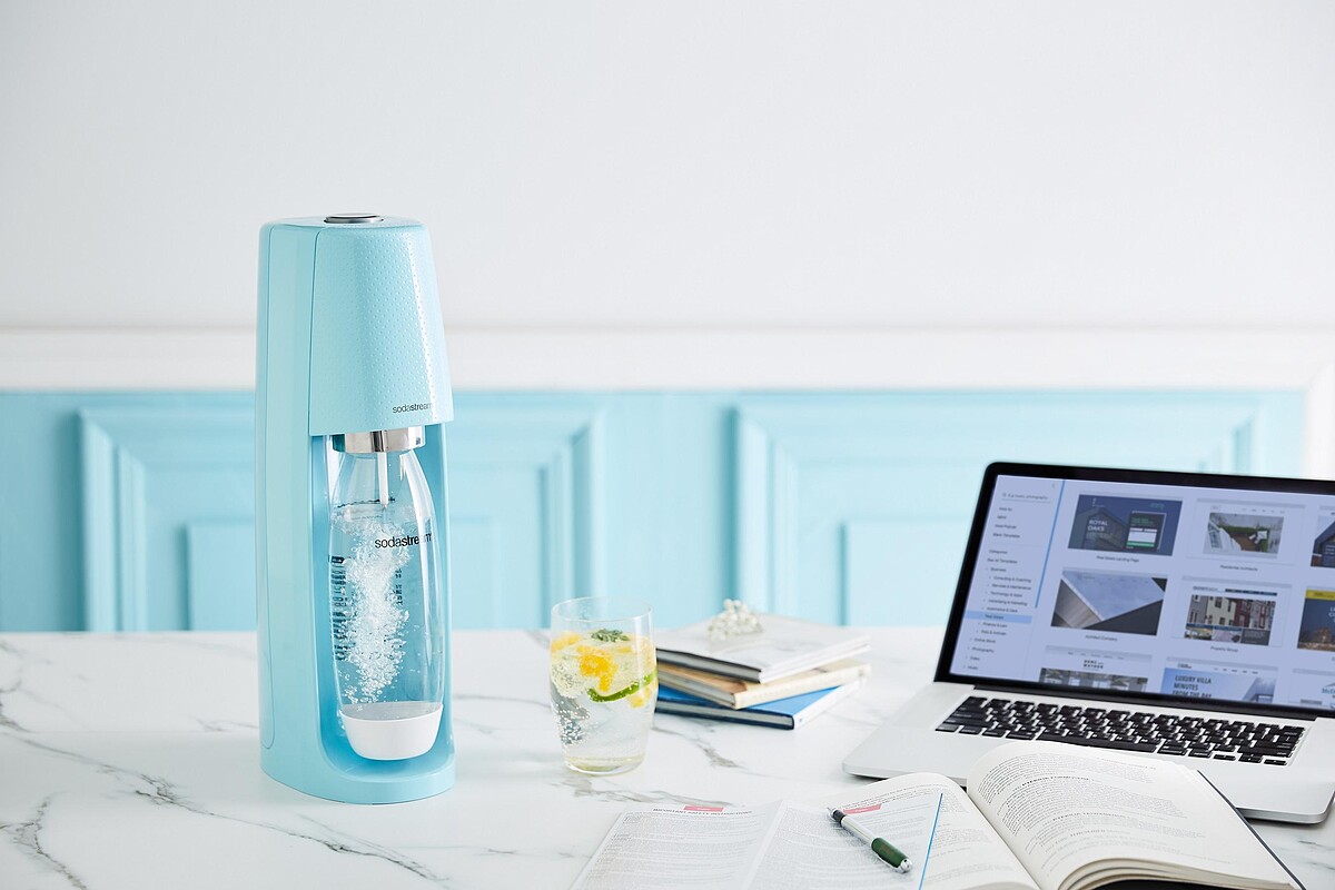 剛好在防疫的非常時期,響應「stay at home」潮流,有一台Sodastream氣泡水機,只要短短30秒 ,就能輕鬆在家自製水果氣泡飲、氣泡調酒等。氣泡水中加入檸檬或是柳丁片、莓果類的水果,就能讓喝水不再單調,而且不出門能享受品味生活之餘,同時更減少塑膠瓶對環境的汙染。