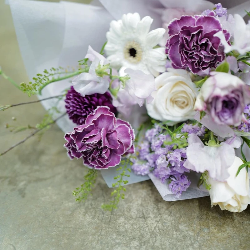 相較於鮮豔色彩,紫色康乃馨低調中帶有高雅優美感~