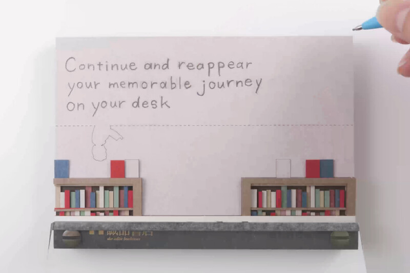 此次的「OMOSHIROI BLOCK紙雕便條紙 x 台灣誠品書店」獨家限量版,便以誠品敦南店為主題,當一張張便條紙撕下,便會浮現書店中明亮窗景、典雅氣質的木質書架,還有穿梭在書店角落中的書車,還有少不了擺放整齊又齊全的書籍。