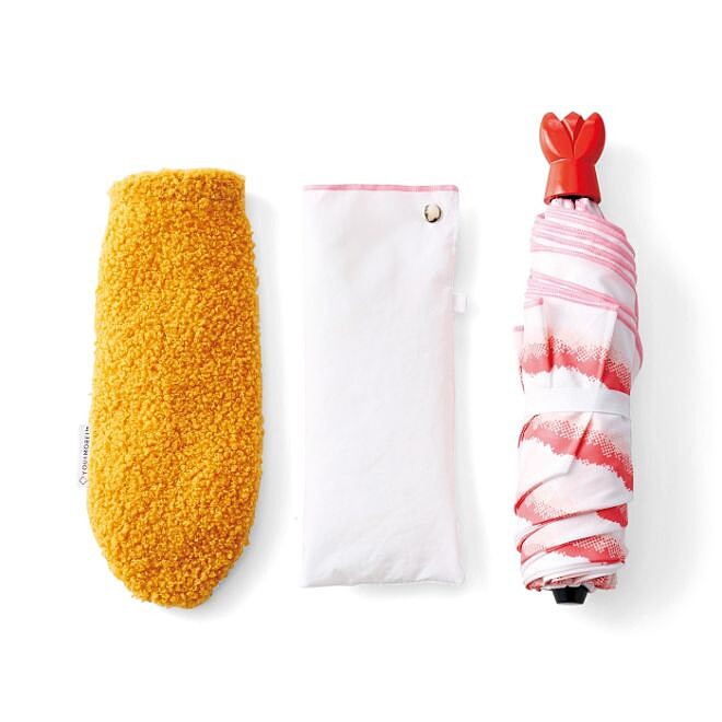 YOU+MORE!除了推出水母雨傘外,還有吃貨必備的炸蝦摺疊傘,從傘套、握柄、傘面圖案都具有小巧思!