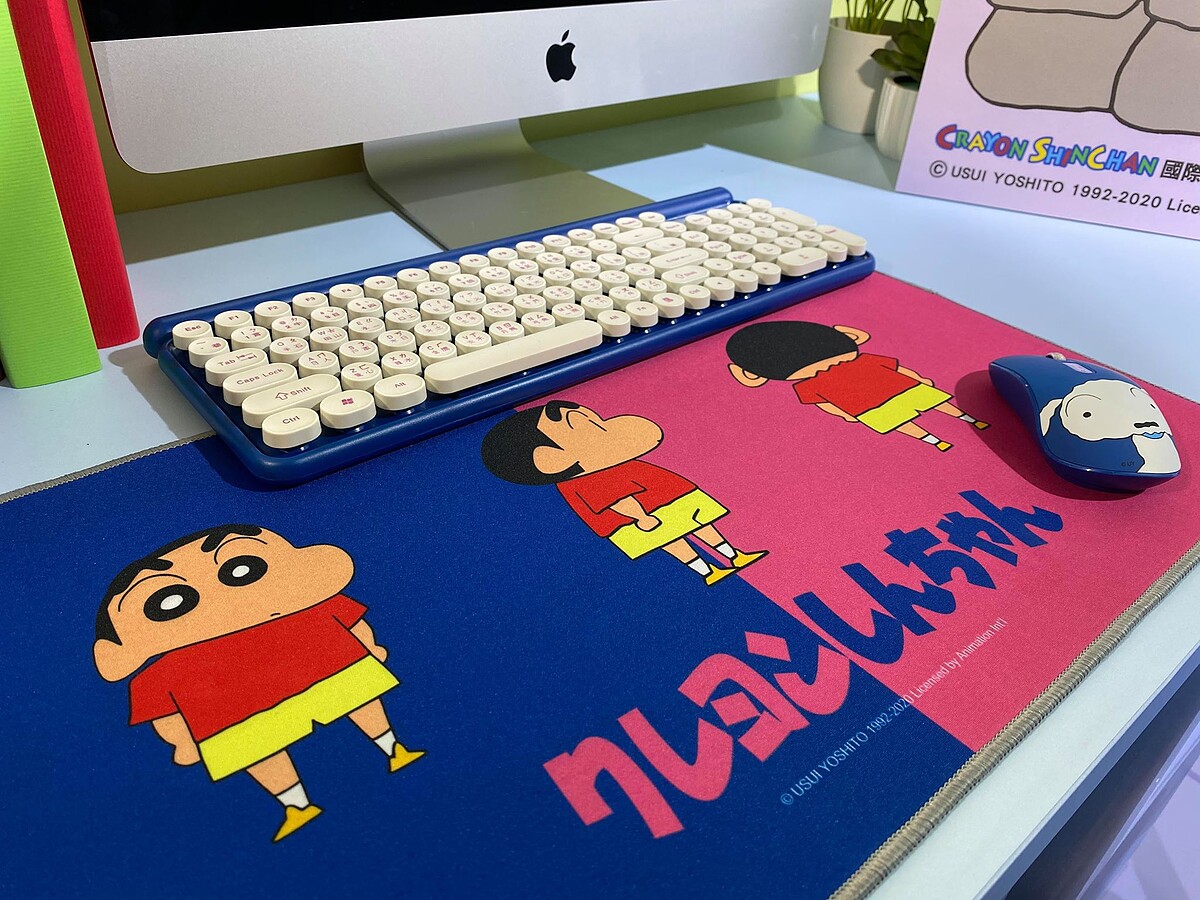 3C控則必收「是在哈囉無線鍵盤組」,有超萌蠟筆小新滑鼠墊、小白滑鼠、復古打字機鍵盤三件套,還是無線設計,讓辦公時光增添趣味。