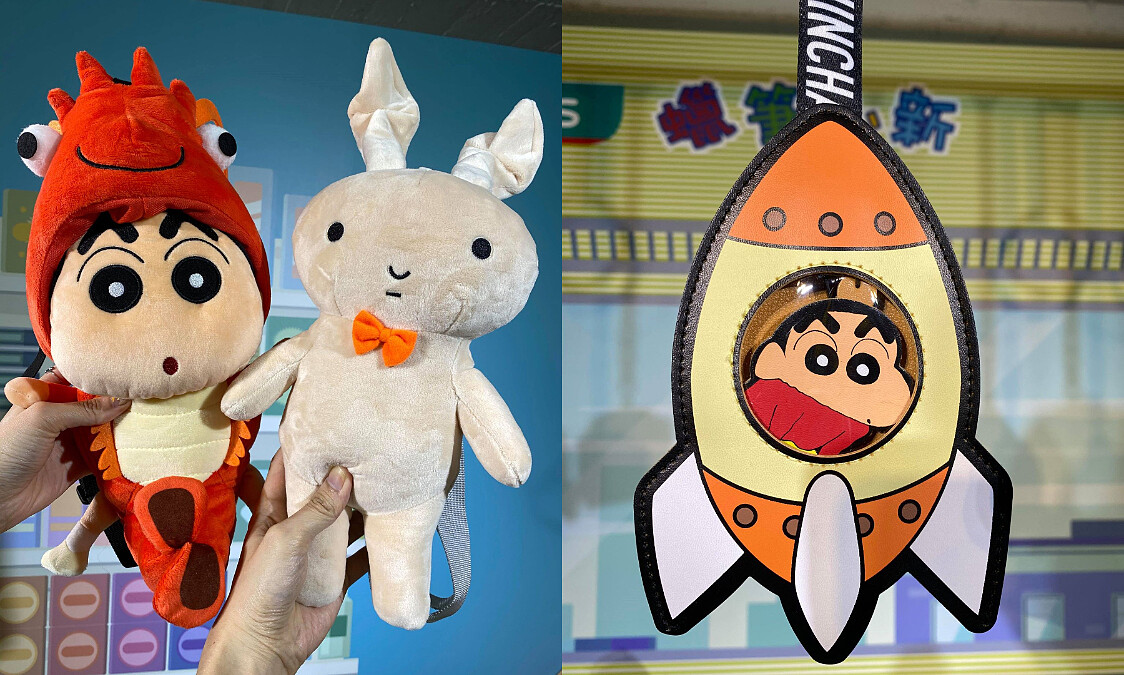 另外「尬電帥掛繩包」共有3款,包括肥嘟嘟佐衛門證件套、小新鑰匙包、小葵收納包,「呱張偶包購物袋」則有龍蝦小新、妮妮兔子2種超萌造型的玩偶,巧妙將收納袋設計其中。
