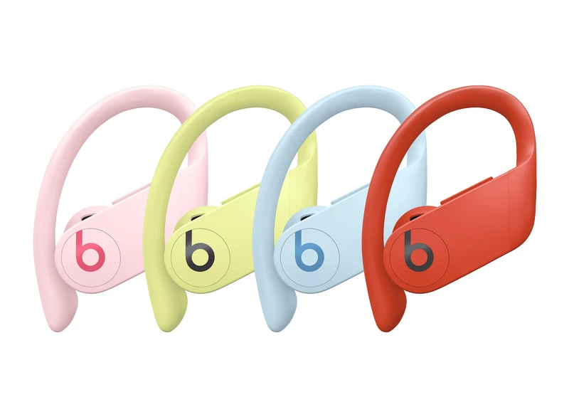 繼2019年暑假推出首款針對運動使用的真無線藍牙運動耳機Powerbeats Pro後,現在換上超適合夏天配戴的活力黃、雲彩粉、熔岩紅及冰川藍等四種繽紛色調,並跟上一代有著同樣性能,搭載Apple H1晶片,可快速支援與iOS裝置配對、使用「Hey Siri」語音喚醒功能。