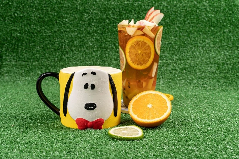 杯身滿滿的史努比,最上方撒上了特製的史努比與胡士托做裝飾,但史努比手搖飲料目前只有台中場才買得到!