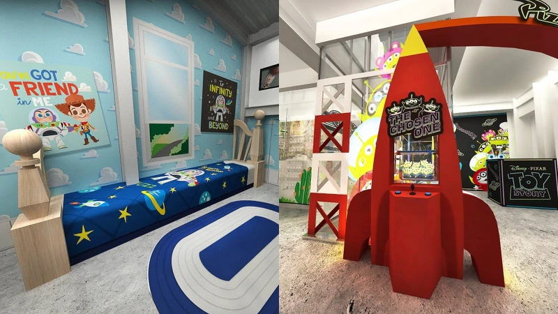 搶先在7/1起跑的台北「Toy Story House」,以CAFE!N台北衡陽店作為據點,一到三樓空間分別神還原經典電影場景,如安弟房間、比薩星球、積木樂園,也在天井區特別設置「飛天胡迪」、巨型互動拍照玩具盒,每個角落都超好拍,一個都不能放過。