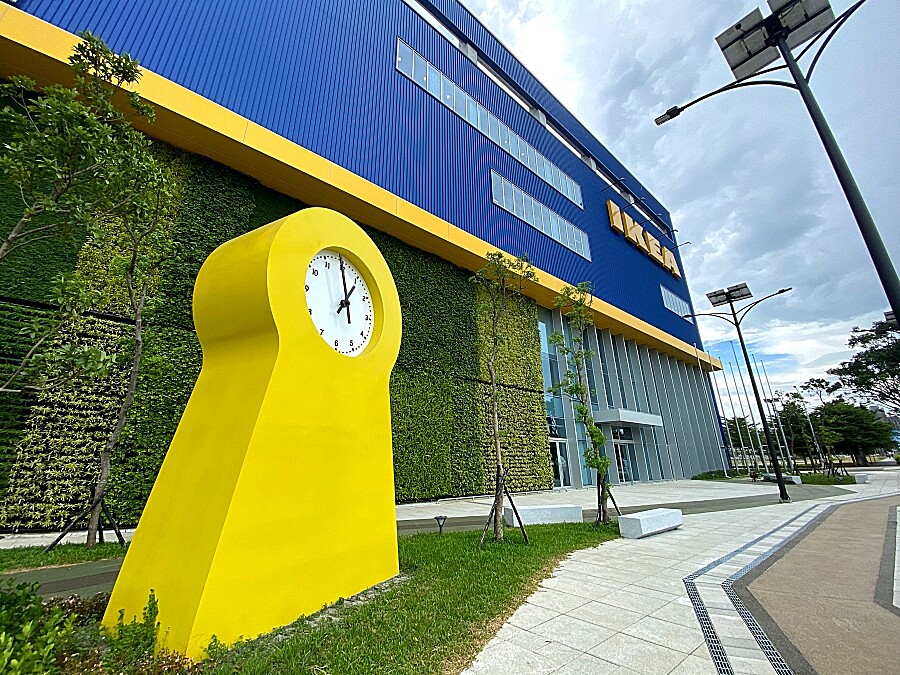 IKEA桃園店擁有2層樓全台最大景觀餐廳,座位數多達755個!還將PS 1995鐘的放大變成黃色巨型時鐘打卡點,以及全台唯一客家咖啡廳的商用展示間,展現出新式與傳統融合美感空間。美食部分有全台獨家「比臉大」戰斧豬排、金沙蝦串,並開賣桃園店獨家限量的EFTERTRADA系列水瓶,兩個顏色太難以抉擇!