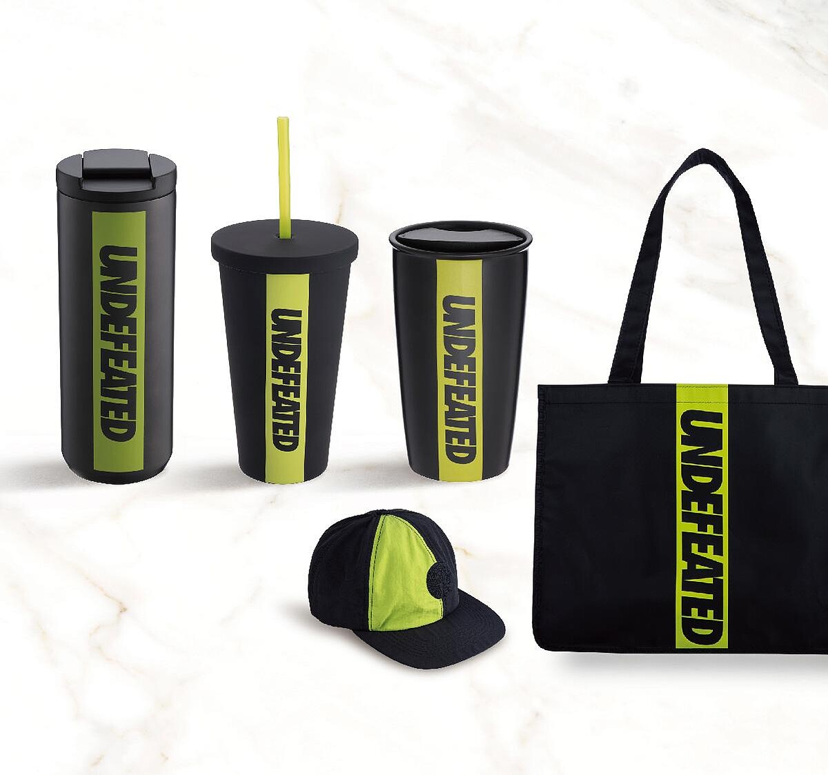 UNDEFEATED美國洛杉磯品牌,2002年由Eddie Cruz & James Bond 所創辦,受到許多街頭潮人喜愛,這回與星巴克合作,從經典雙層馬克杯、不鏽鋼杯到TOGO冷水杯,霓虹螢光對比全黑背景,搭配未來感的俐落線條,更增添了幾分個性。