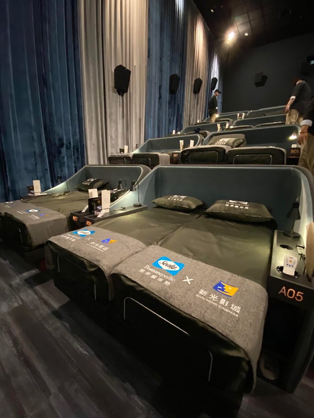 全球眾多五星飯店選用的席伊麗床墊與台灣新光影城首度跨界合作,「SealyCinema席伊麗影廳」全廳38席全部採用澳洲原裝進口、擁有眾多專利設計、且領先業界專為電動床設計的彈簧床墊,每組市價超過五十萬元的奢華電動床組,觀影時動動手指操作無線遙控器,即可依照需求調整床墊的曲線幅度,並提供不同姿勢的貼身支撐。