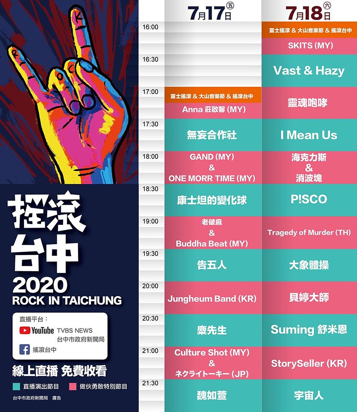 7/18「2020搖滾台中」直播網址: