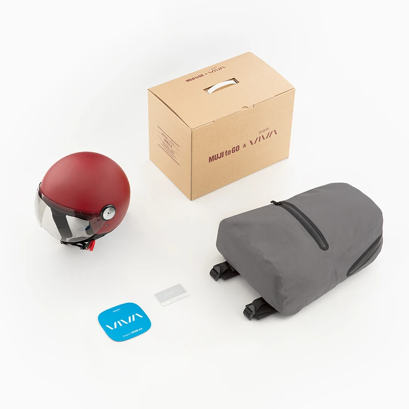 即日起至8/9買車,會送「Gogoro VIVA & MUJI to GO 限量交車禮」,包含無印紅Gogoro 安全帽、MUJI to GO 聚酯纖維附防水膠條後背包、iQ System® 智慧鑰匙卡、Gogoro VIVA 專屬使用手冊等,數量有限,送完為止。「Gogoro VIVA Plus 無印白」車款,售價59980元。