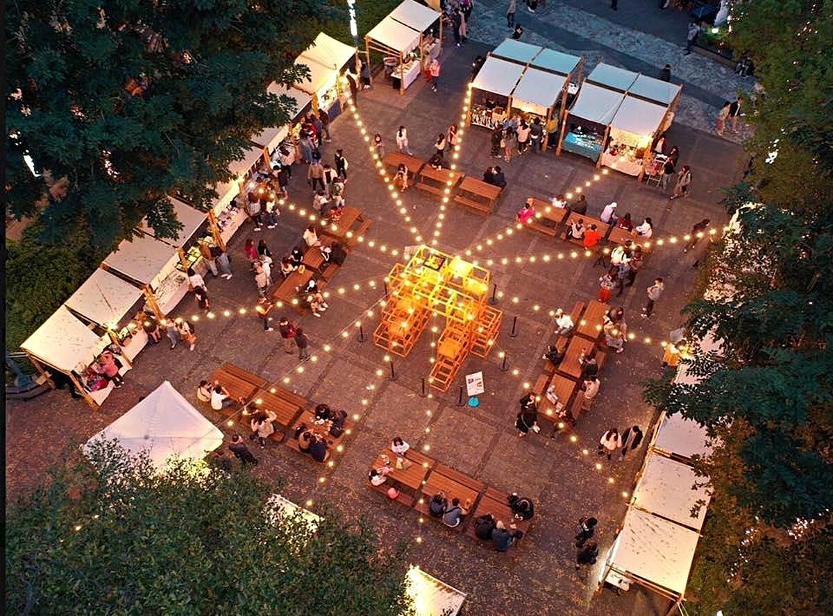 現場攤位有兩大主題:「文創手作」會以取材自日本屋台的木作風格,充滿濃厚東洋氣息;美食則有特色美食、異國料理滿足大家的胃。白天會是充滿文青風格的純白原木風格市集,到了晚上則會有暖黃色燈光裝置藝術,為夜市增添浪漫氣息。