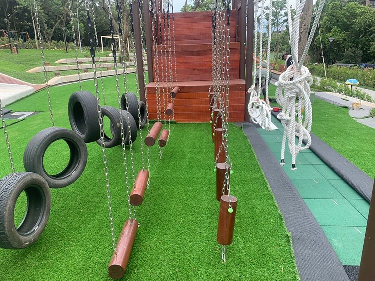 森林挑戰區則有適合三代同堂的遊樂設施,包含低齡滑索、全國第一座壯齡(鋼軌)滑索、磨石子溜滑梯、綜合性遊憩區與多項挑戰設施,歡迎大家來挑戰體能。周邊設置體健設施、吊床及吊椅休憩區;區內設置遊客服務中心、活動餐車,提供有興趣遊客環境教育課程與特色餐飲。