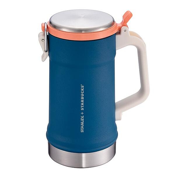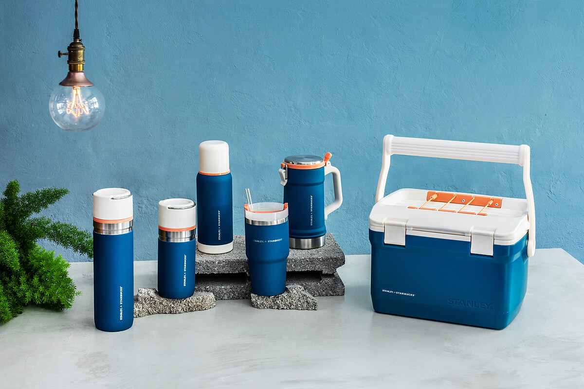 星巴克與STANLEY的聯名商品每次推出都會造成瘋搶,全新一波則是以戶外野地露營為發想,將夜晚的沉靜藍色,襯托有如晚霞的鮮明橘色融入在杯身設計,表現出活力與冒險精神,超適合Outdoor潮人搭配。