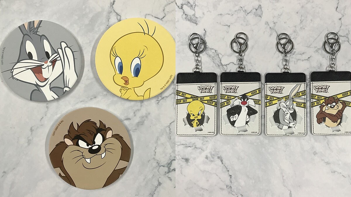 《樂一通Looney Tunes》卡通中有兔巴哥、崔弟、達菲鴨、傻大貓、大嘴怪、威利狼和嗶嗶鳥等人氣角色,現在都化為可愛又實用的商品,從防水杯套、吸水杯墊、證件卡套、馬克杯、方鏡、布章別針、文件夾通禿有,鐵粉們還能把T恤、帽子穿上身。