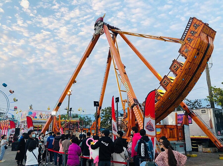 在2019年12月下旬,「JETS嘉年華」首度登台、進駐高雄港七號碼頭,現在前進北台灣、進駐近期超夯的桃園青埔,讓大家搭乘高鐵就能輕鬆抵達!最大賣點就是25公尺、8層樓高,車廂還會360度旋轉的「Sky Diver 瘋狂尖叫摩天輪」,另外還有能體驗飛上天快感的「Cliff Hanger 翱翔天際」、宛如置身暴風圈「Hurricane 瘋狂颶風」、隨波浪擺盪「Power Surge 驚濤駭浪」及「Pirate Ship 擎天海盜船」、「Power Surge 驚濤駭浪」 等,超刺激遊樂設機,絕對讓你放膽尖叫、心跳加速。