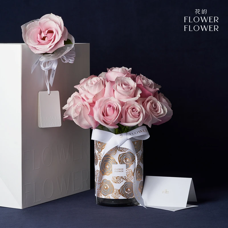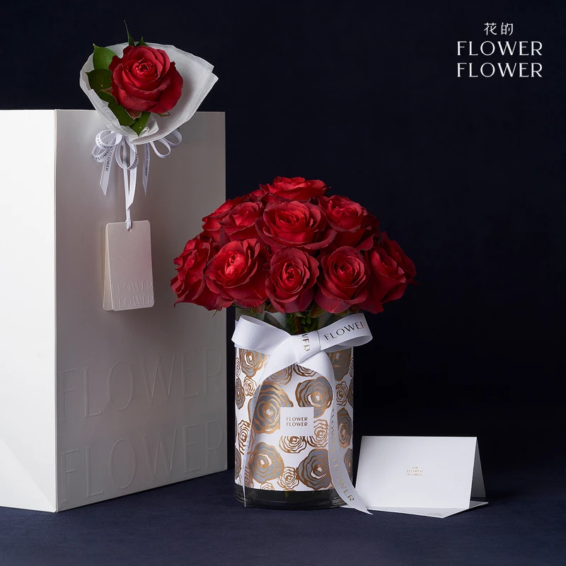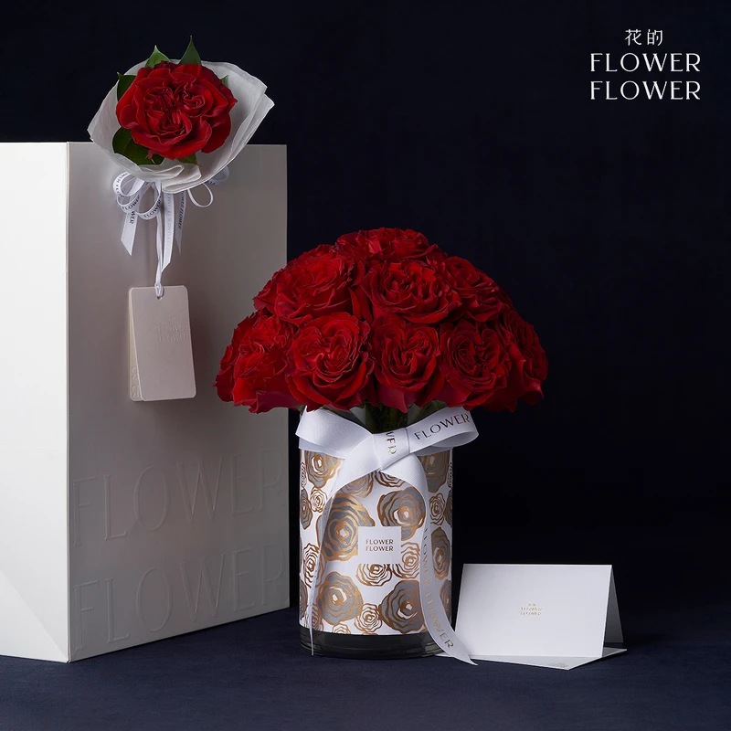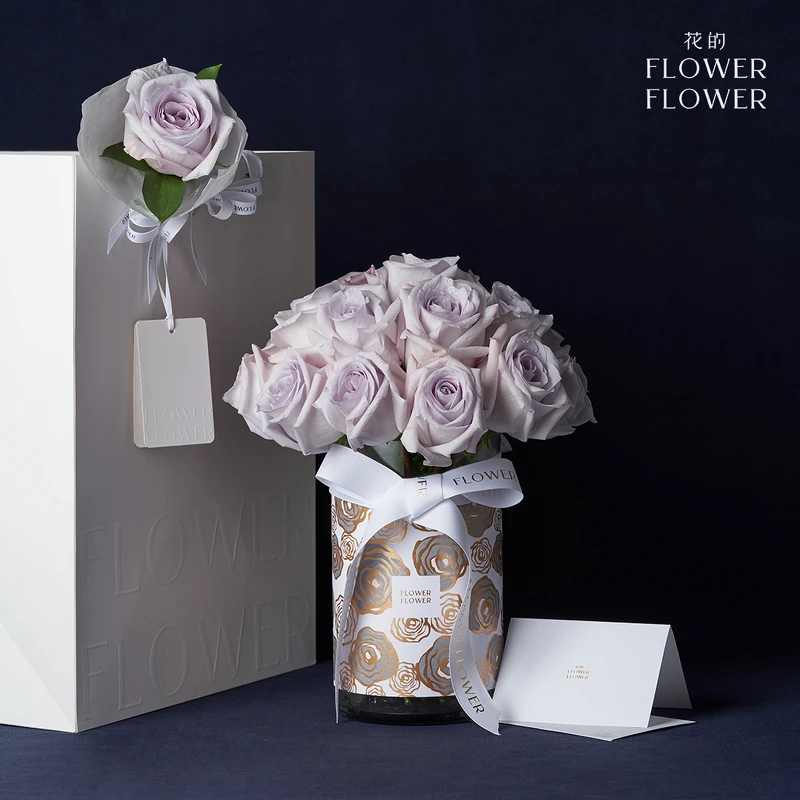 《Flower Flower花的》是玫瑰花界的精品品牌,只選用全球等級最高的進口玫瑰。沒有過多繁複的配花與配色,用最簡約的單一純色,以手綁古典浪漫的圓形作為品牌識別,運用單一種類的玫瑰花透過花本身的自然輪廓,展現出玫瑰花最精緻完美的姿態!
