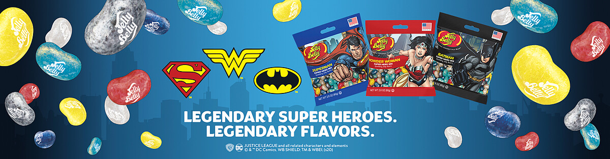 Jelly Belly吉力貝推出DC漫畫超級英雄系列,以漫畫風格呈現出DC宇宙中的超級英發揮巧思推出各種各樣美味,包括超人,蝙蝠俠和神奇女俠。藉由正義聯盟糖果一起進入DC擴展宇宙吧!