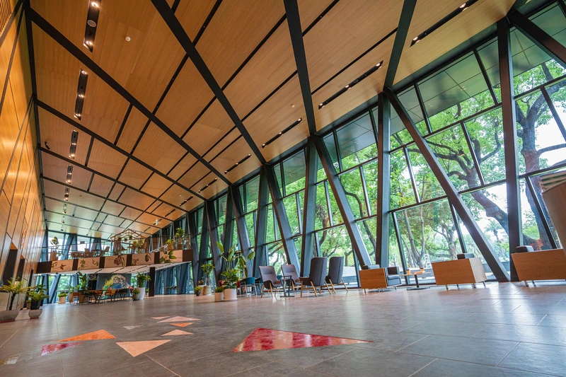 全新「森林圖書館」美翻天!屏東縣立圖書館30年建築翻新,陽光灑落玻璃窗景,仰望綠意閱讀太幸福