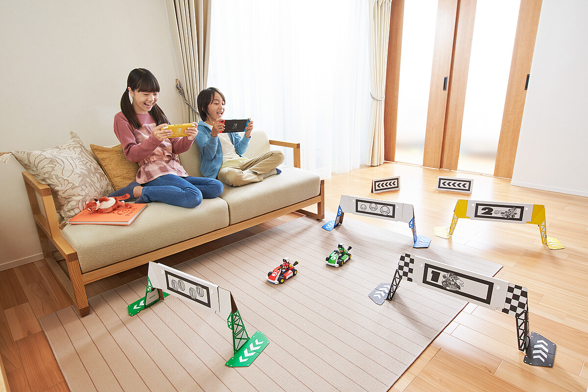 《瑪利歐賽車實況:家庭賽車場》是一款實體遙控車內建攝影機與 Nintendo Switch結合的賽車遊戲,介於真人賽車、電玩之間,結合現實畫面,更能感受真實賽車的競速快感!