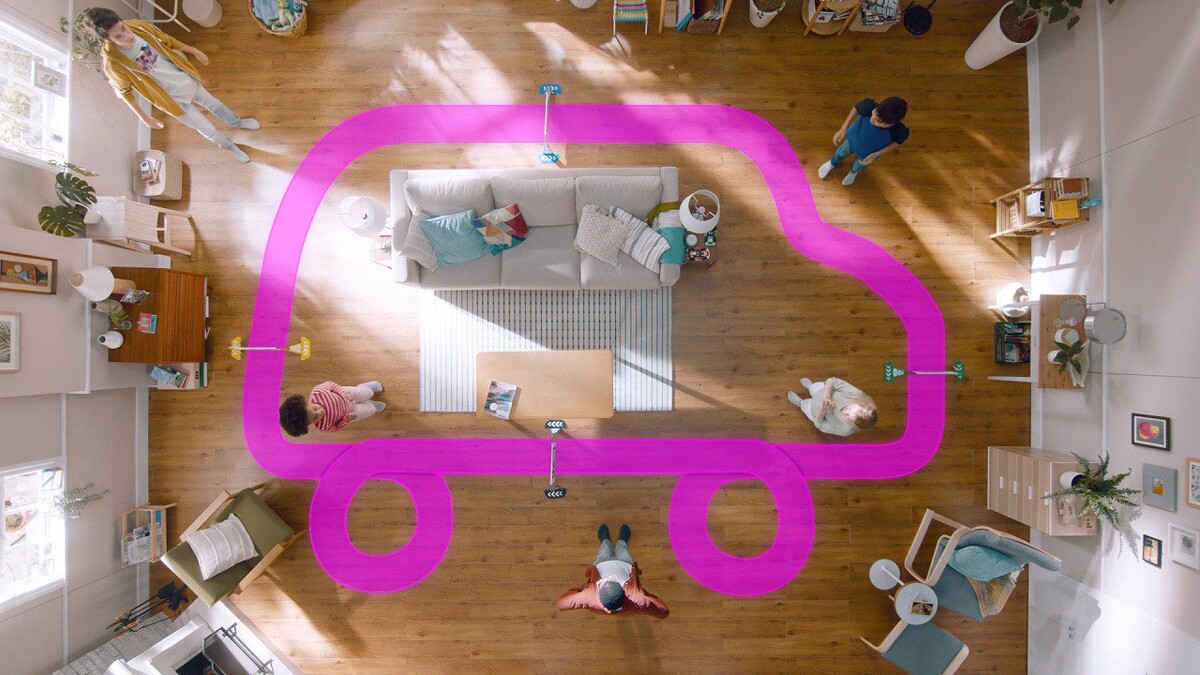 最後再用操控實體小賽車試跑一圈擬定的賽道後,家中的影像、賽車路線就會傳送至主機中,螢幕上就會產生AR賽道影像!