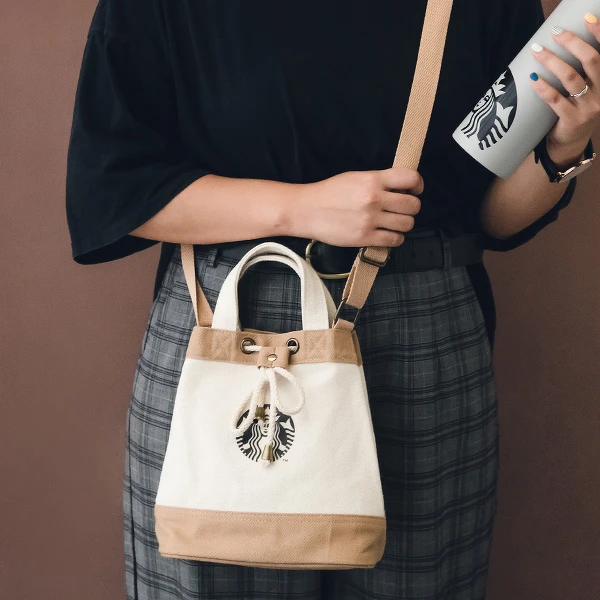 星巴克線上門市全新推出一系列實用包袋,拚色的抽繩水桶包好可愛呀!